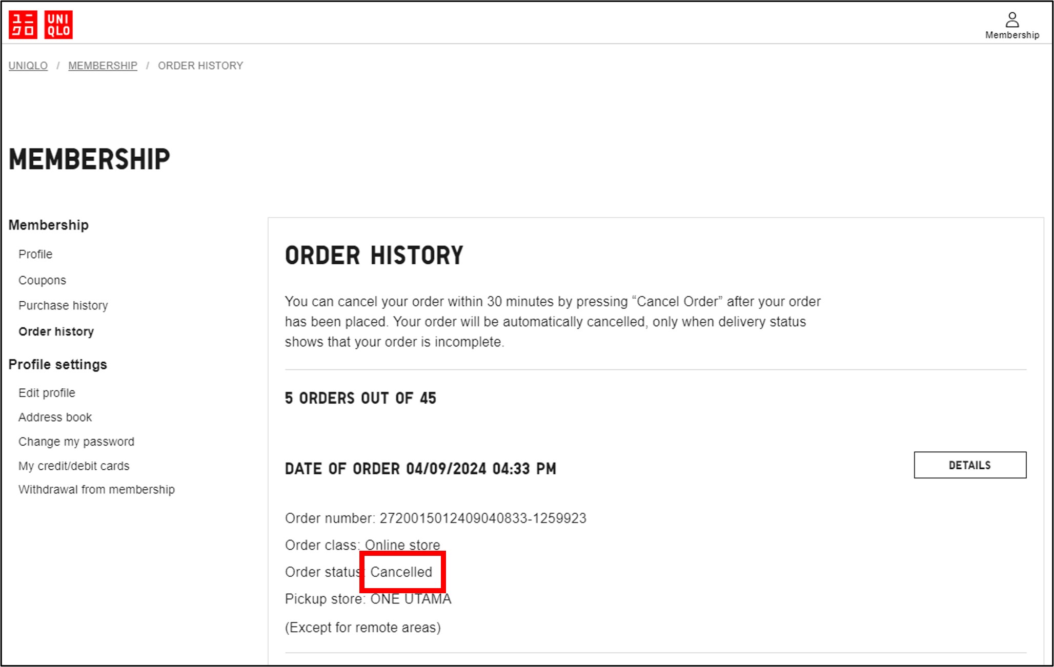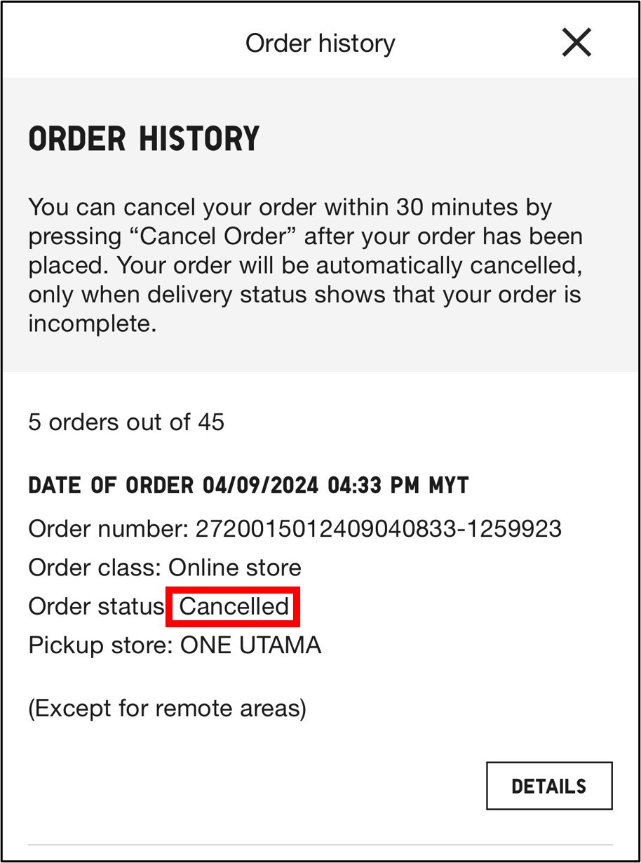 Step 3. Order Status will be shown as 【Cancelled】 once successful.