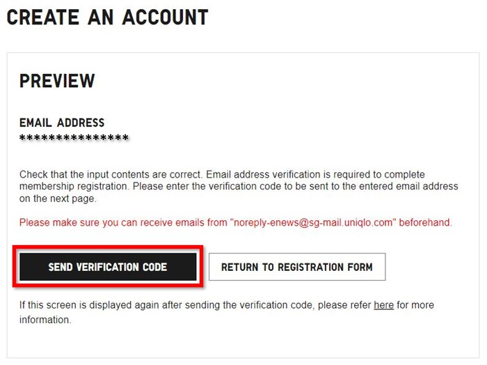 Step 1. After submitting your detail for account creation, click 【SEND VERIFICATION CODE】.